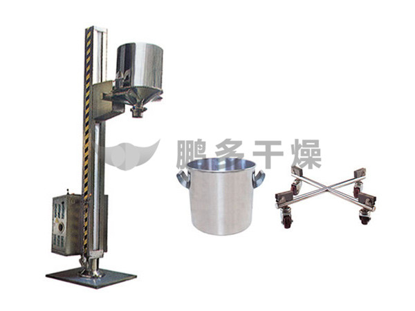 ??TJG 系列固定提升加料機由兩部分組成,即提升機及底座。提升機由機架、液壓提升系統(tǒng)及料門翻轉(zhuǎn)機構(gòu)組成。工作時,先將提升機的料門與料桶扣合,啟動提升操作桿,料門與料桶一起上升,啟動翻轉(zhuǎn)操作桿,料桶即可番轉(zhuǎn)180度,呈底桶向上姿態(tài)并移動到所需位置,利用料門上出料蝶閥,可很容易將物料加入所需的工藝設(shè)備中。