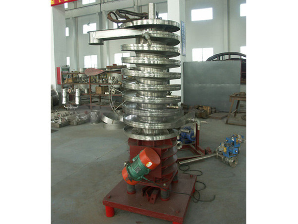 濕物料自頂部加料口進(jìn)入螺旋床內(nèi),在周向激振力及重力的作用下,物料沿螺旋床自上而下作跳躍運(yùn)動(dòng)直至最底層;同時(shí),潔凈的熱風(fēng)由螺旋床底部進(jìn)入,與分布在床上的物料進(jìn)行充分的傳熱和傳質(zhì)后,由頂部排濕口排出。從而使物料達(dá)到了干燥的目的。